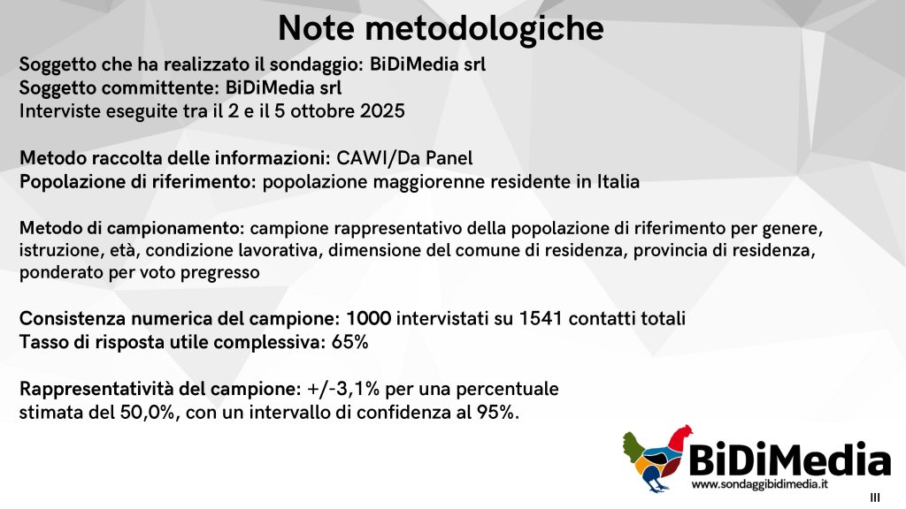 Ricordiamo, prima delle note metodologiche, che nella live per abbonati, oltre alle slide qui presentate e offerte in anteprima, è stato mostrato un altro sondaggio in completa esclusiva per gli abbonati. Non resta che abbonarvi!
